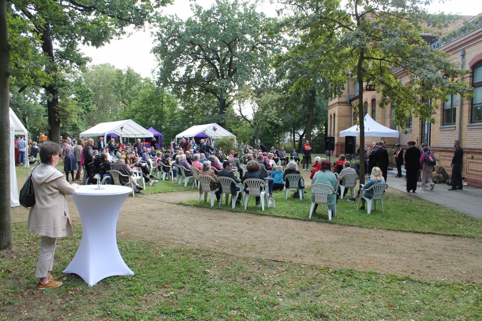 Schon vor Beginn wurden die Gäste über eine Jazz-Band zum Geschehen geleitet. Den Einführungsgottesdienst zum Jahresfest führte Pastor André Zank-Wins durch, in Begleitung der leben lernen Band, die aus Mitarbeitenden besteht. Nach kurzen Ansprachen der Bereichsleitung Wohnen, Diemo Domnick, der Vorsitzenden des Bewohnerbeirats, Stefanie Albrecht und der neuen Geschäftsführung, Dr. Benjamin Bell und Cornelia Jonas, konnte das Fest endlich beginnen.