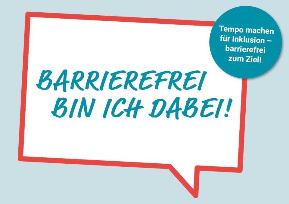 Das Motto des Tages lautet „Barrierefrei bin ich dabei!“, es ist angelehnt an das diesjährige Motto der Aktion Mensch „Tempo machen für Inklusion – barrierefrei zum Ziel!“