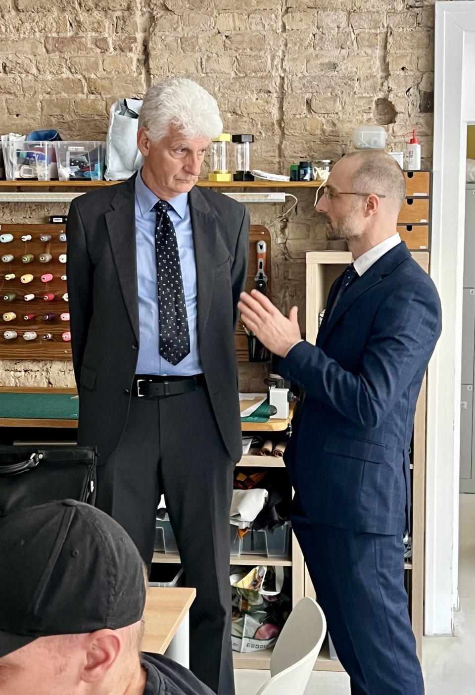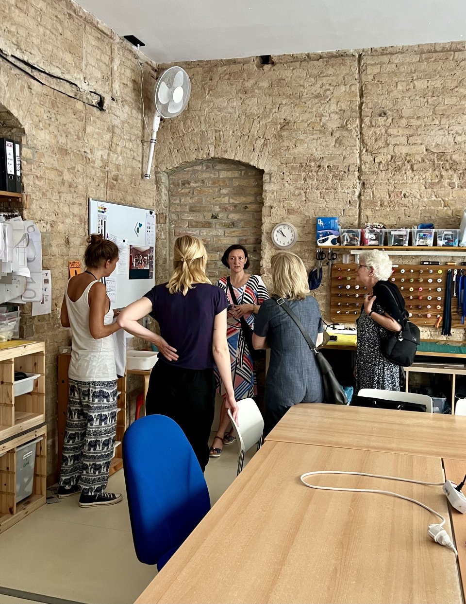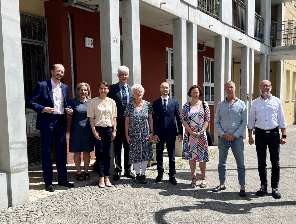 Am 17. Juli besuchte Dr. Rolf Schmachtenberg, Staatssekretär im Bundesministerium für Arbeit und Soziales (BMAS), gemeinsam mit Mitarbeitenden seines Geschäftsbereiches unsere Beschäftigungs- und Förderbereiche in Friedrichshain und Weißensee sowie das Inklusive Gemeinschaftshaus am Mirbachplatz. Begleitet wurden sie von Dr. Katrin Grüber, Beraterin für Partizipation, Teilhabe und Selbstbestimmung (PaTeSe).