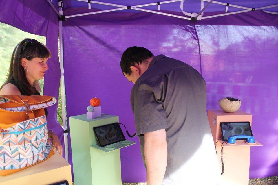 Viele testen mit großer Neugier die bunten, interaktiven Steelen. In den hinterlegten Videos wird dort Schritt für Schritt erklärt, wie einzelne Produkte, die im BFB gefertigt werden, entstehen.
