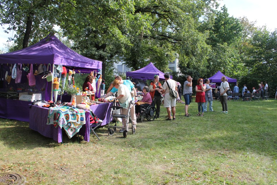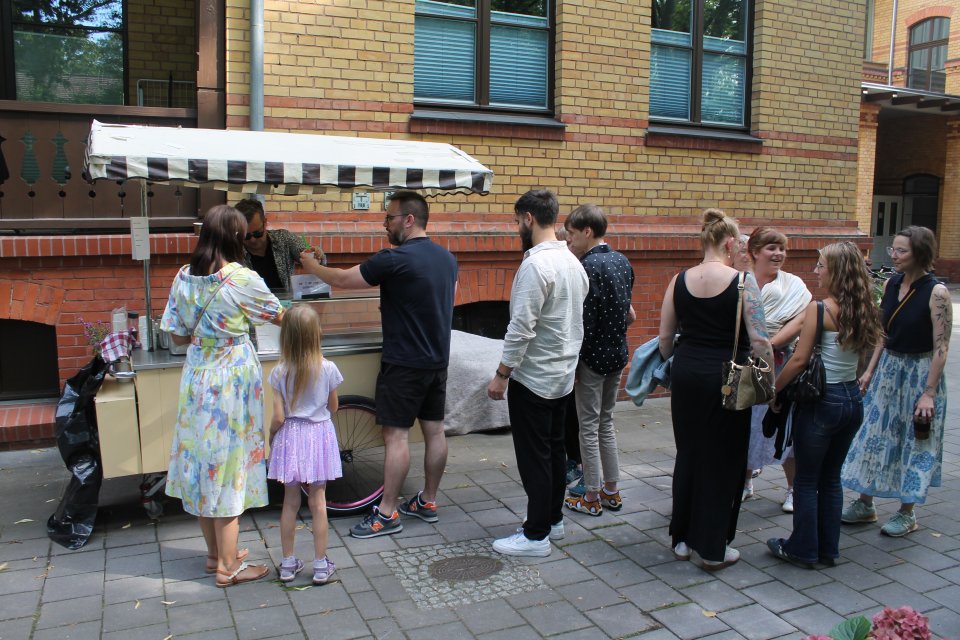 Nach den Grußworten der Vorsitzenden des Bewohnerbeirats und der Bereichsleitungen konnten die verschiedenen Stationen rund um Haus 17 besucht werden. Besonders gefragt waren die Fotobox und das lebende Casino. Am BFB-Stand gab es tolle, handgefertigte Produkte zu erwerben, und in der Mitnehmerei gab es gut erhaltene Vintage-Klamotten zum Mitnehmen. Das Glücksrad und die Mocktailbar, die perfekt zum Summerfeeling passten, durften natürlich auch in diesem Jahr nicht fehlen.
