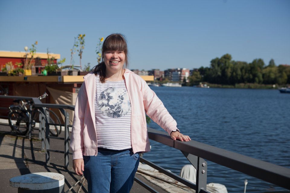 Auf der Spree-Halbinsel Alt-Stralau befindet sich ein Wohnhaus inmitten einer großzügigen Grünanlage. Hier leben jeweils acht Menschen in fünf Wohngruppen.